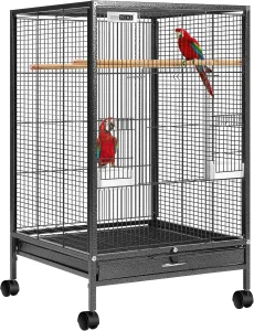 When we want to look into durability with the looks and affordability this cage fits in the picture just perfect. It is quite safe to your caiques with its non-toxic finishing and snaps lock mechanism. The strong bar wiring cant bent by the big birds even.