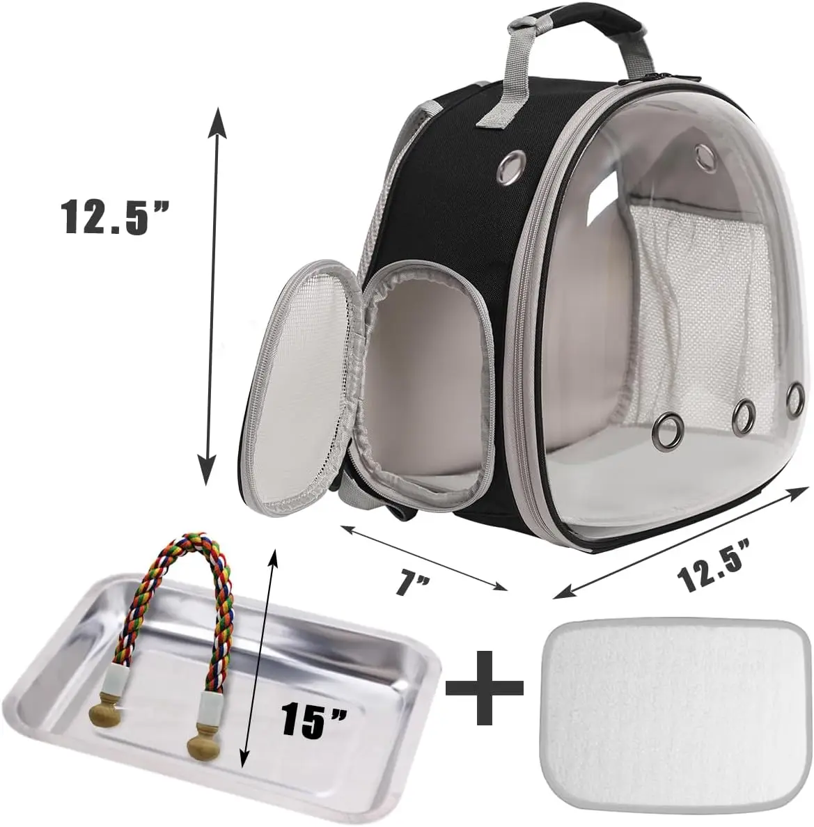 Small Bird Travel Carrier Backpack: Space capsule astronaut liked clear bubble window in front, allows your feathered friends parakeets to check surroundings while traveling to vet or outdoor adventure. Small Bird Carrier Cage for small to medium sized of parrot, budgies, conure, cockatiel and parakeets.